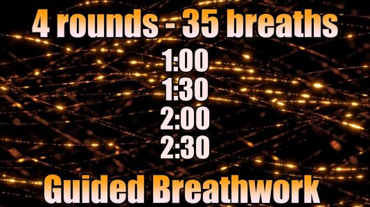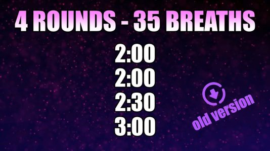 35 breaths / round – Breathing guided – 5 rounds with 4 minutes of meditation:round 1) 35 breaths + holding 1minround 2) 35 breaths + holding 1min 30sround...
