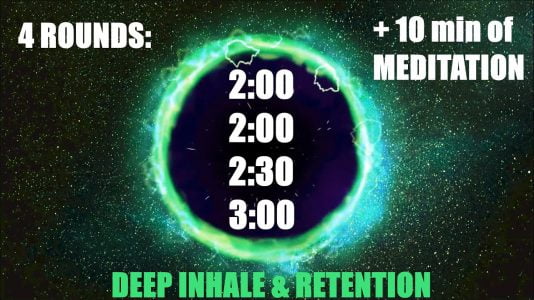 Breathing Technique – 4 rounds with Om Mani Padme Om + Theta Waves:round 1) 40 breaths + holding your breath for 2 minutesround 2) 40 breaths + holding your breath...