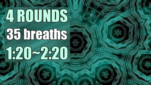 [00:00] 1st: 35 breaths + holding your breath for 1 minute and 20 seconds