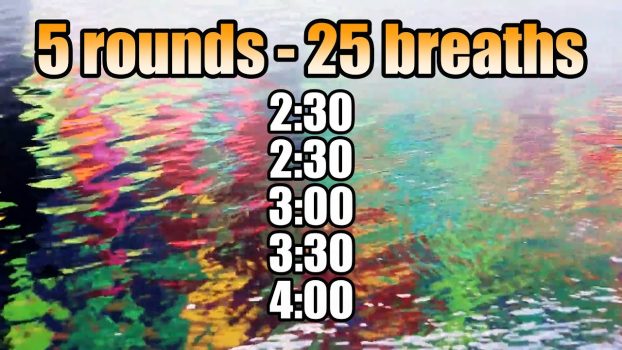 (00:00) Round 1: 25 breaths + 2 minutes 30 seconds breath hold