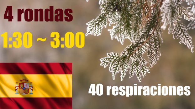 (09:00) ronda 3) 40 respiraciones + 2 minutos y 30 segundos [contener la respiración]